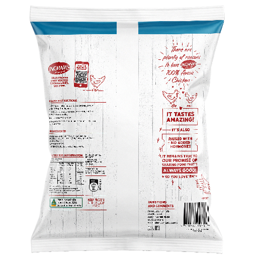 Ingham’s Sliced Chicken Breast Strips are fully cooked oven roasted chicken strips, skin free. Always no added hormones, made with 100% Aussie chicken and good source of protein.
