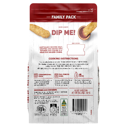 Ingham’s Crumbed Chicken Tenders Original Family Pack is made with 100% Aussie Chicken. Always made with 100% Aussie chicken, no added hormones and a good source of protein.