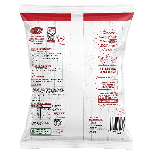Ingham’s Devil Chicken Tenders are an Australian chicken meat, chopped and shaped into tenders then coated in a spicy crumb. Fully cooked. It is made with 100% Aussie chicken. Always no added hormones and a good source of protein.