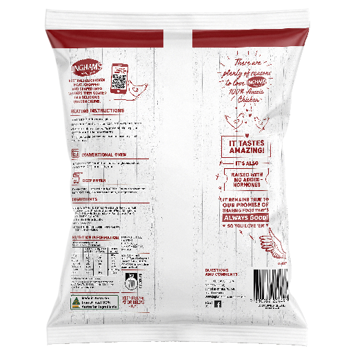 Ingham’s Crumbed Chicken Tenders Original Family Pack is made with 100% Aussie Chicken. Always made with 100% Aussie chicken, no added hormones and a good source of protein.