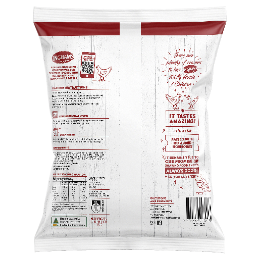Ingham’s Original Chicken Chips are made with 100% Aussie chicken. Australian chicken meat chopped and shaped into chips then coated in a crispy tempura style batter. Always no added hormones and good source of protein.