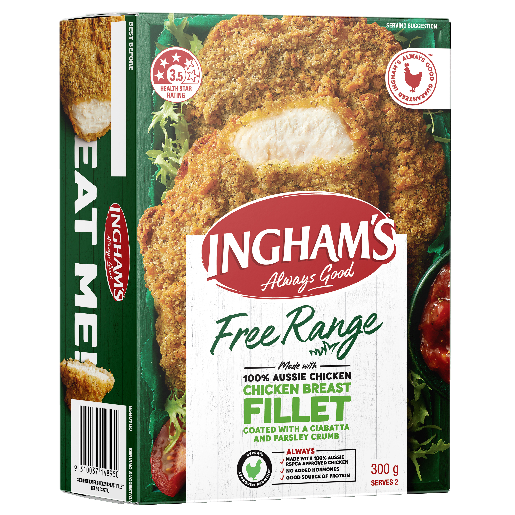 Ingham’s Free Range Chicken Breast Fillet With A Ciabatta And Parsley Crumb is made with chicken breast that contains no artificial colours, flavours or preservatives.