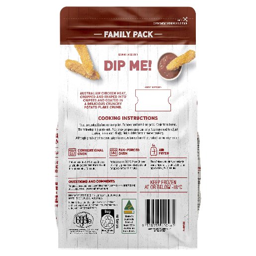 Ingham’s Crumbed Chicken Chipees family pack – Always made with 100% Aussie chicken, no added hormones and a good source of protein.