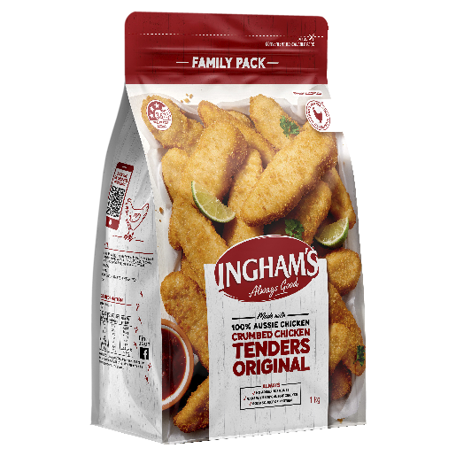 Ingham’s Crumbed Chicken Tenders Original Family Pack is made with 100% Aussie Chicken. Always made with 100% Aussie chicken, no added hormones and a good source of protein.