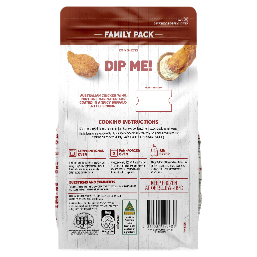 Ingham’s Buffalo Chicken Wing Dings is made with 100% Aussie chicken. It is a good source of protein and no added hormones.